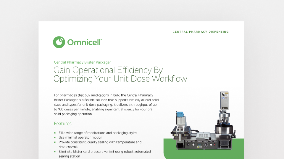 Central pharmacy is the medication dispensing hub of every hospital. Roadblocks that surface here impact patient safety, care, and clinical workflows throughout the health system. Omnicell automates manual dispensing tasks to reduce errors and waste, improve accuracy, and give valuable human resources more time to focus on the work that matters most—patient care.